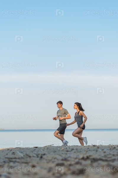 Бегущие мужчина и женщина на природе