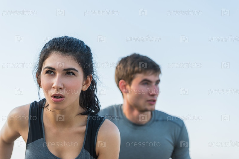 Бегущие мужчина и женщина на природе