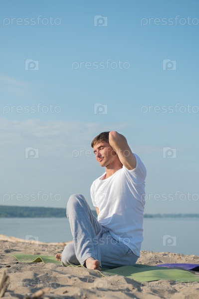 Мужчина занимается йогой