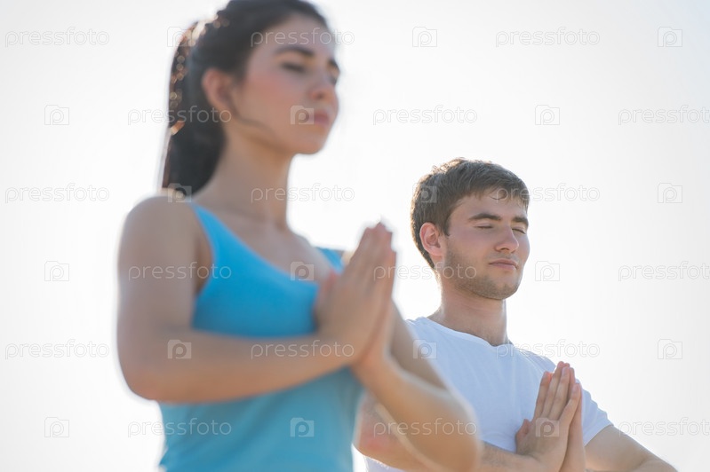 Молодая пара занимается йогой