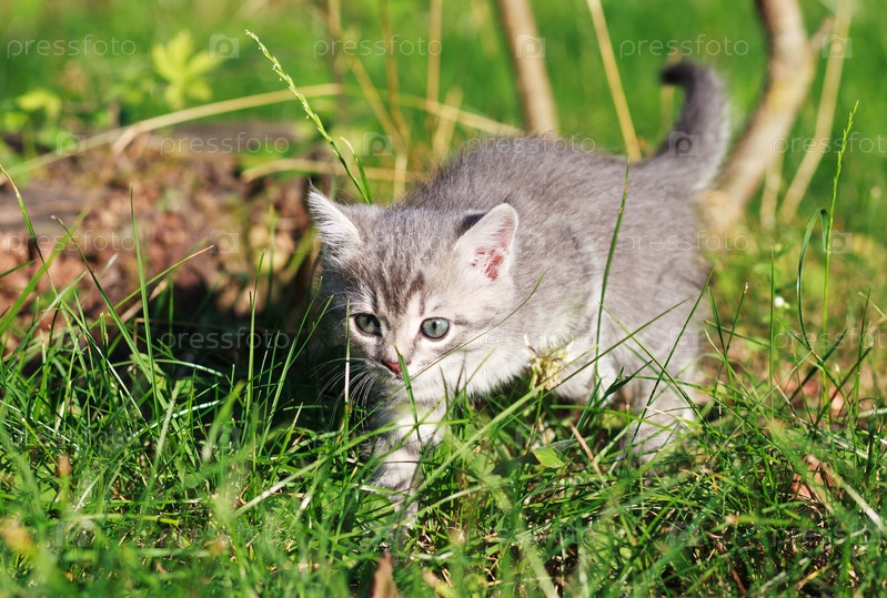 Котенок в зеленой траве
