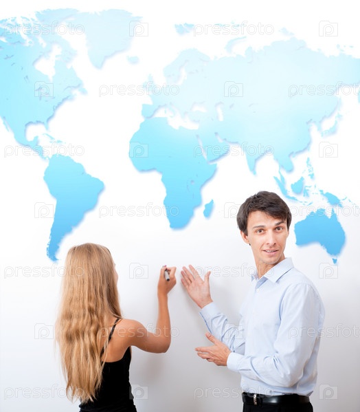 Учитель и студентка на уроке географии