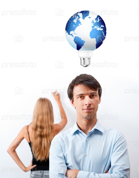 Молодой учитель крупным планом с нарисованной лампочкой над головой