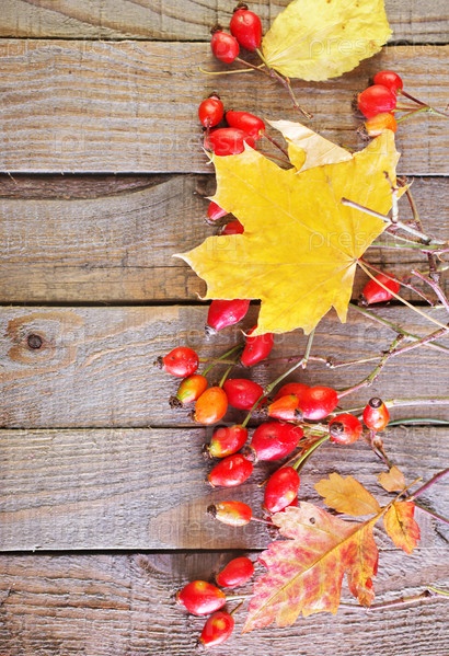 Осенние листья на деревянном фоне