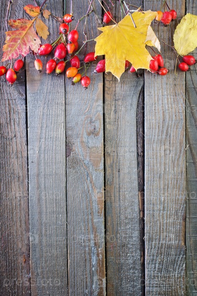Осенние листья на деревянном фоне