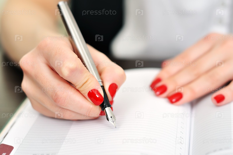 Женщина пишет в блокноте