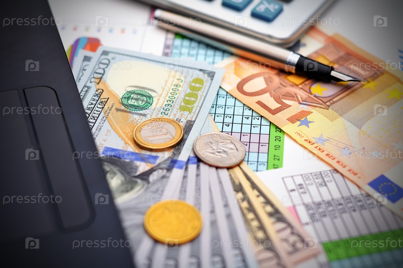 Деньги и финансовые документы на столе