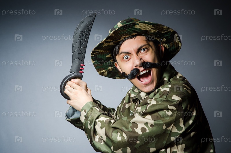 Смешной солдат на темном фоне