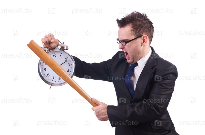 Мужчина разбивает часы битой