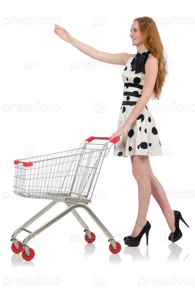 Женщина с продуктовой тележкой