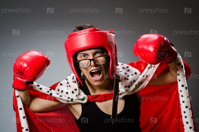 Боксер в красных перчатках темном фоне