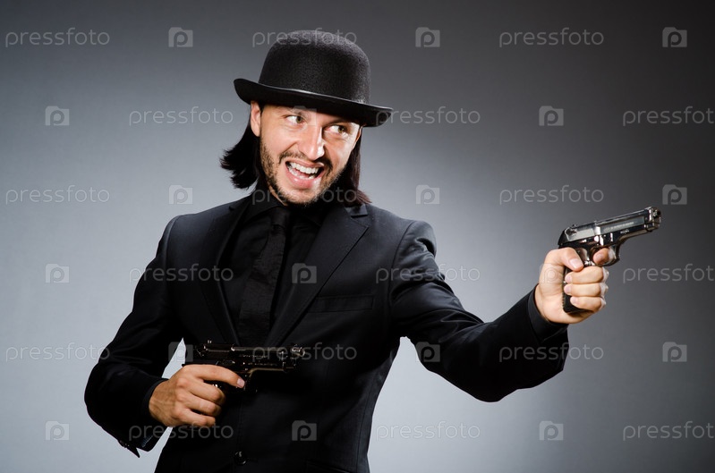 Мужчина в котелке с оружием