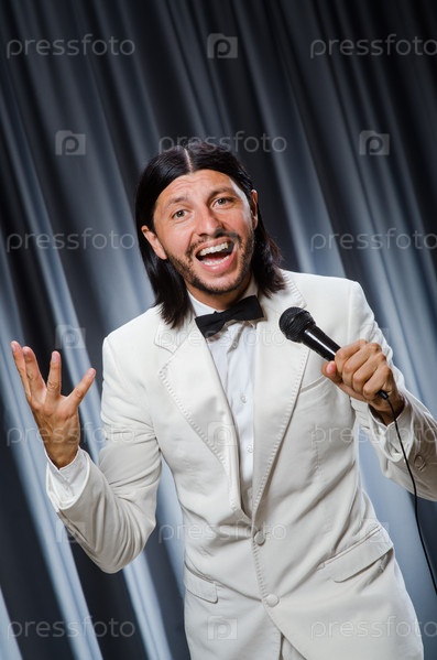 Человек поет караоке