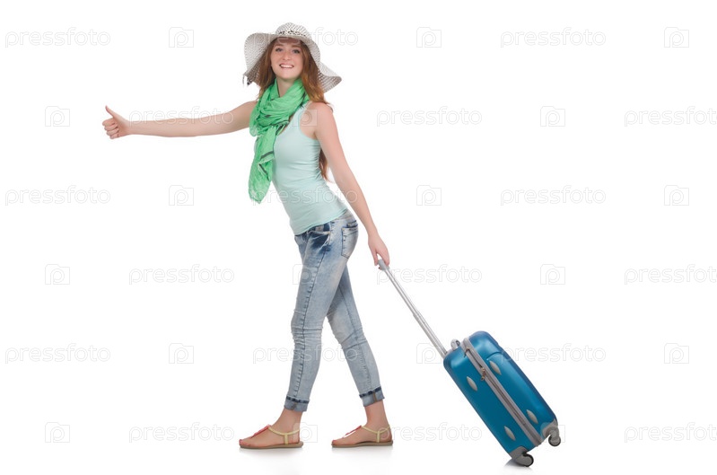 Путешественница, изолированная на белом