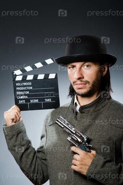 Человек в шляпе с хлопушкой
