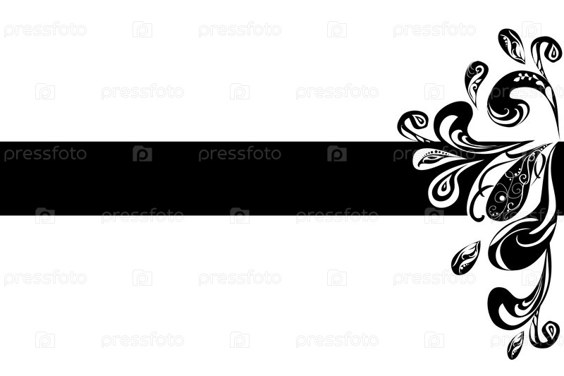 Красивый фон с черной полосой и растительным орнаментом