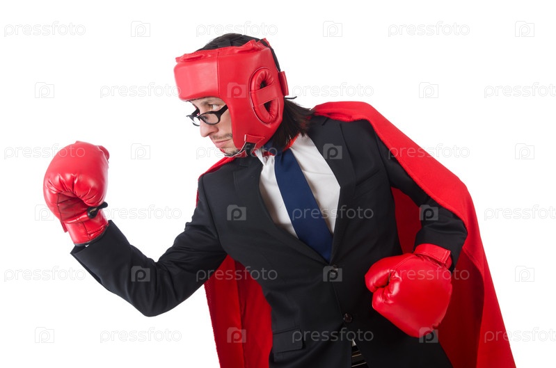 Молодой бизнесмен в боксерских перчатках