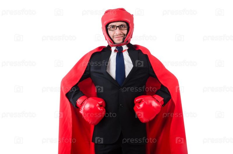 Молодой бизнесмен в боксерских перчатках
