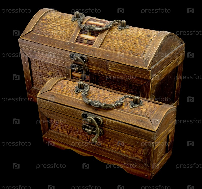 Два древних сундука с железными ручками на темном фоне