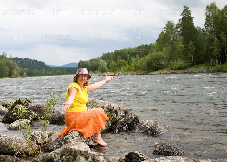 Портрет женщины, сидящей на берегу реки