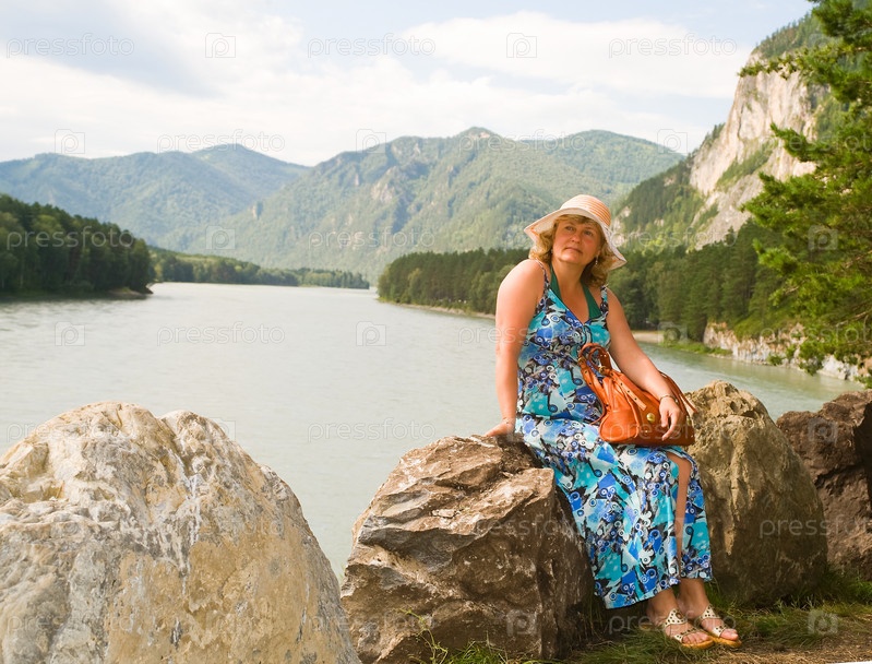 Портрет женщины, сидящей на камне