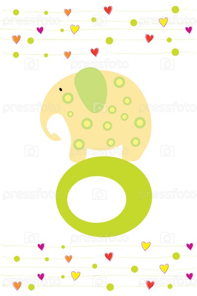 Слон на зеленом колесе и сердечки, белый фон