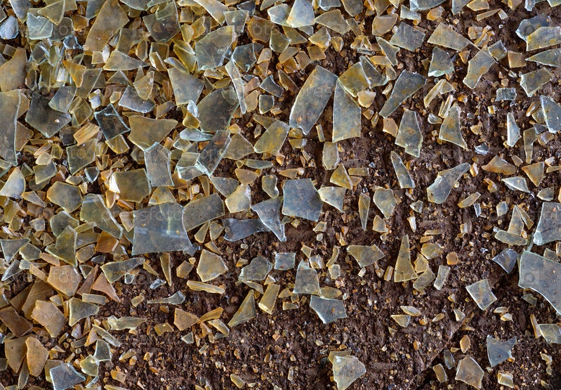 Грязный пол и осколки стекла