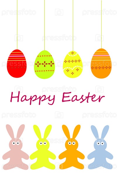 Пасхальные кролики и яйца, векторная иллюстрация