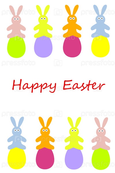 Пасхальные кролики на яйцах, векторная иллюстрация