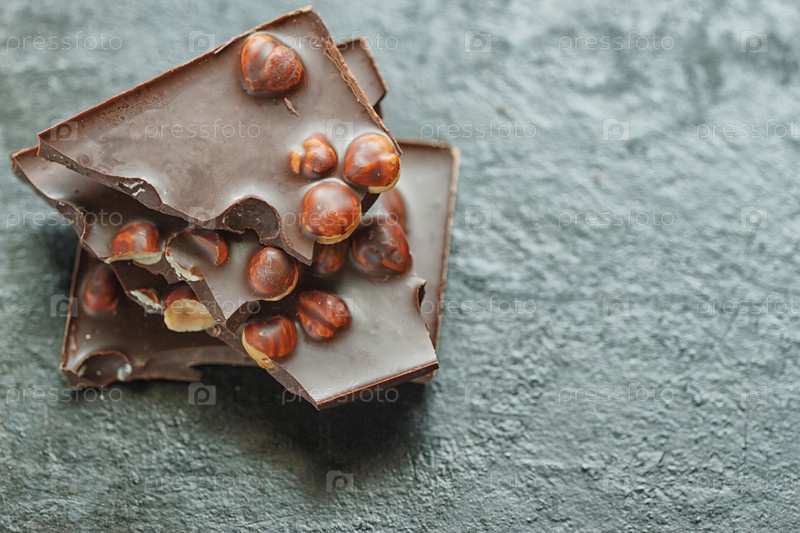 Шоколад с орехами на деревянном фоне