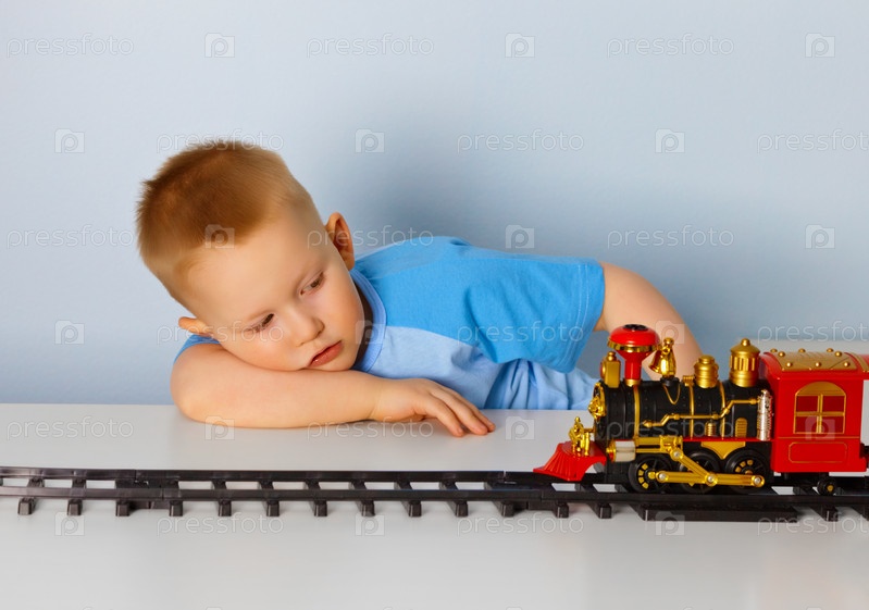 Мальчик играет с паровозом