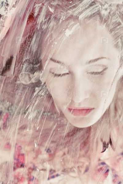 Портрет красивой женщины за стеклом