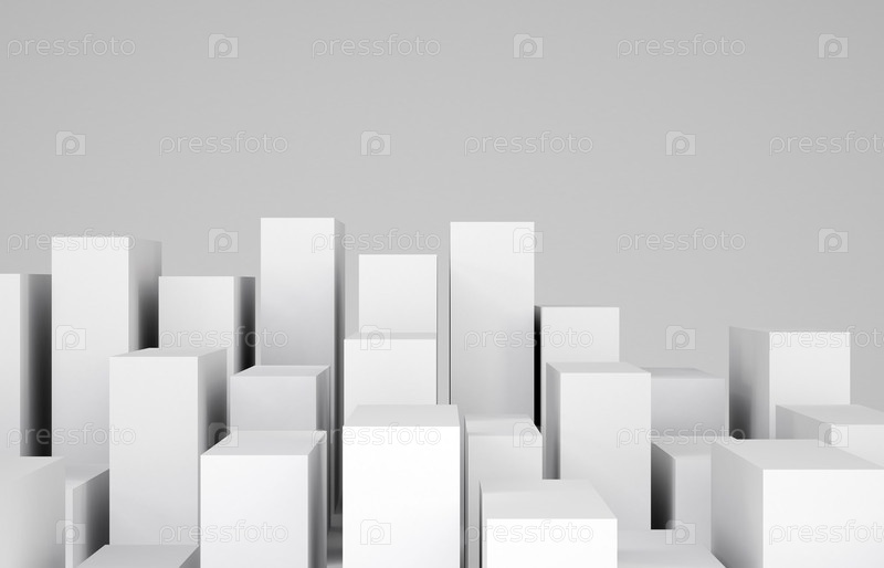 Белые кубики на сером фоне. Концепция городского строительства