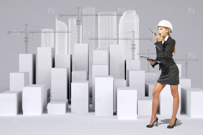 Деловая женщина на фоне строительной площадки