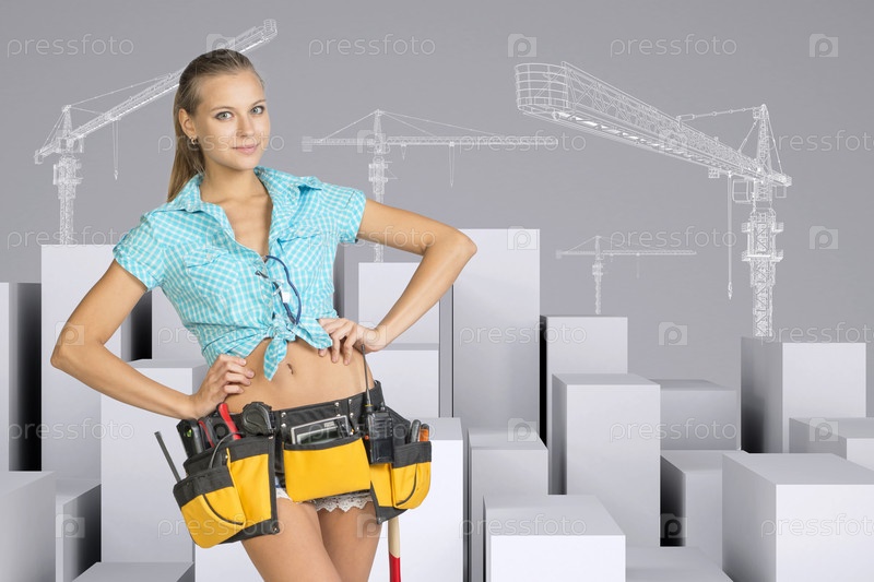 Женщина на фоне строительной площадки