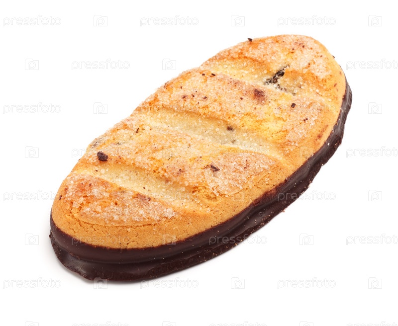 Песочное печенье с шоколадом на белом фоне