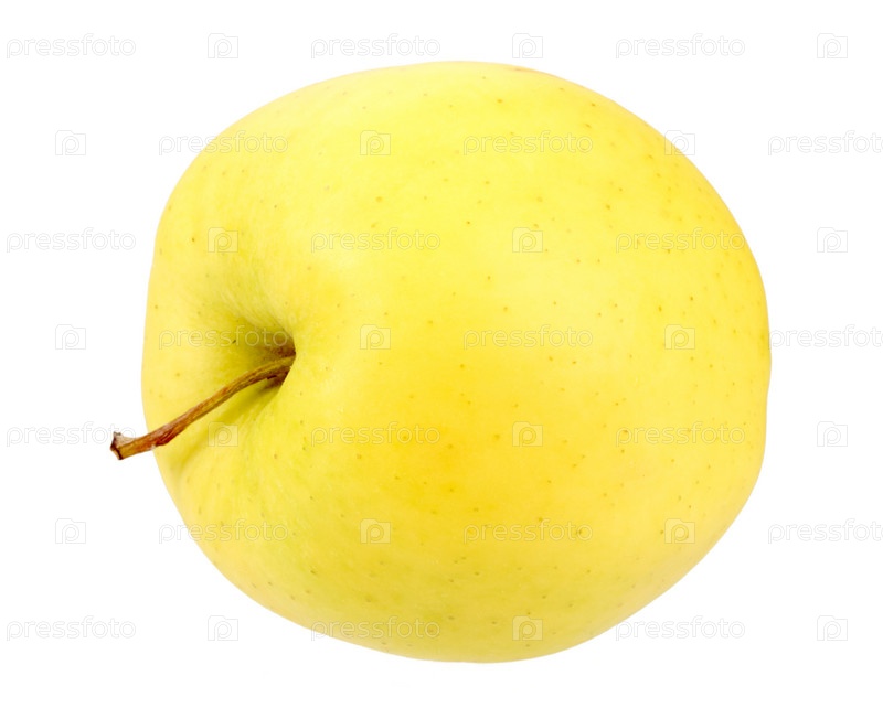 Желтое яблоко, изолированное на белом фоне. Крупным планом