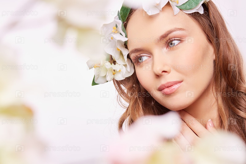 Красивая женщина с цветами в волосах