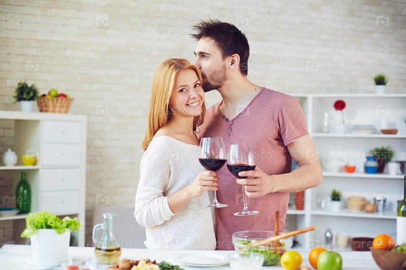 Пара с вином в кухне