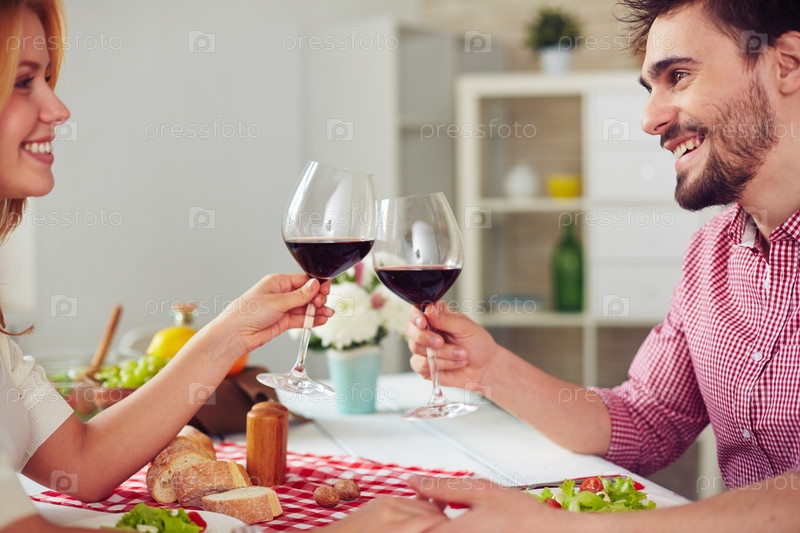 Пара ужинает в кухне