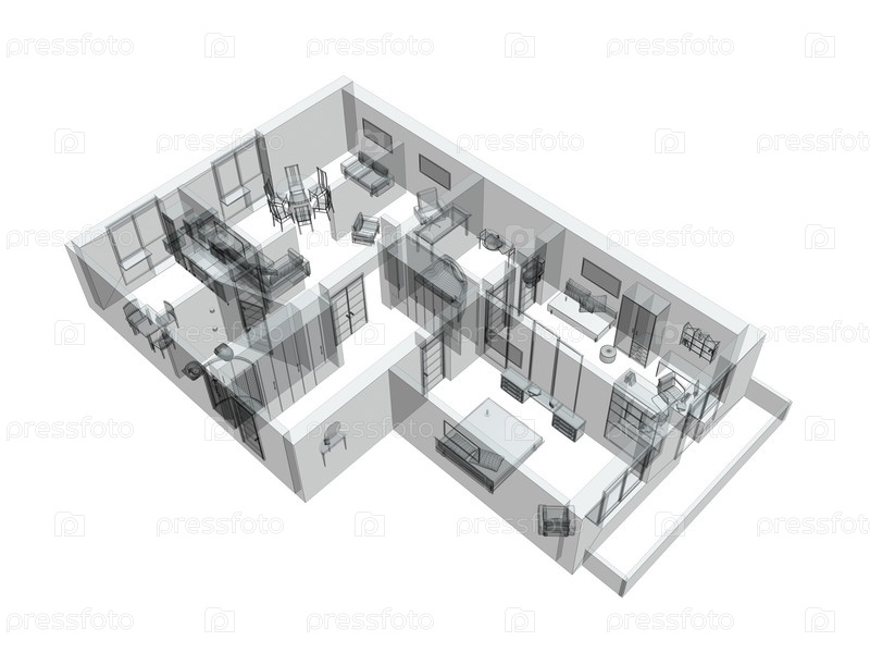 3d эскиз четырехкомнатной квартиры