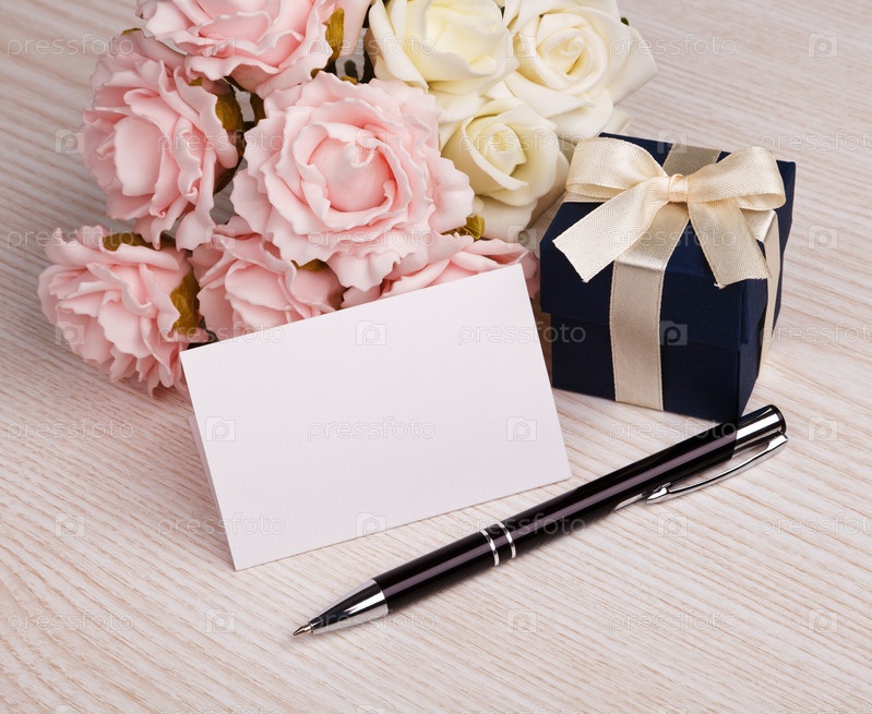 Карточка, цветы и подарок