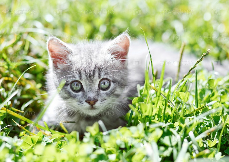 Маленький котенок в траве