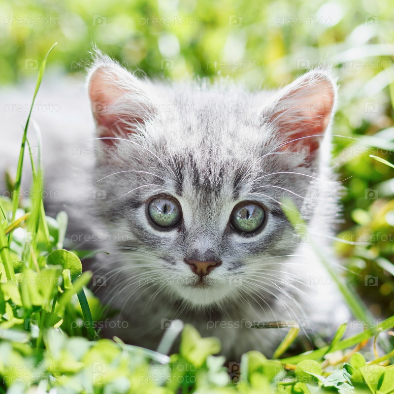 Маленький котенок в траве