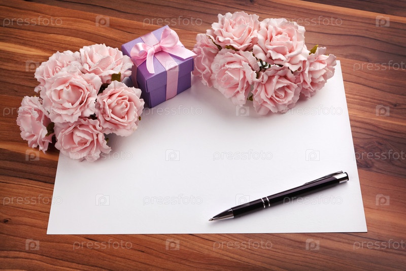 Открытка с розами и подарок