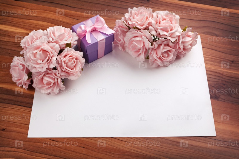 Открытка с розами и подарок