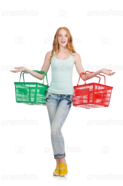 Женщина с корзиной для покупок