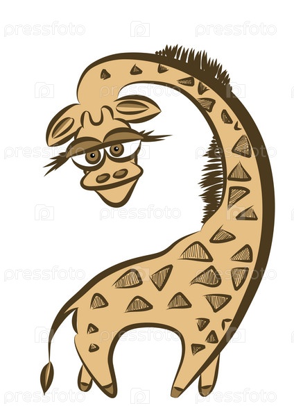 Забавный жираф на белом фоне