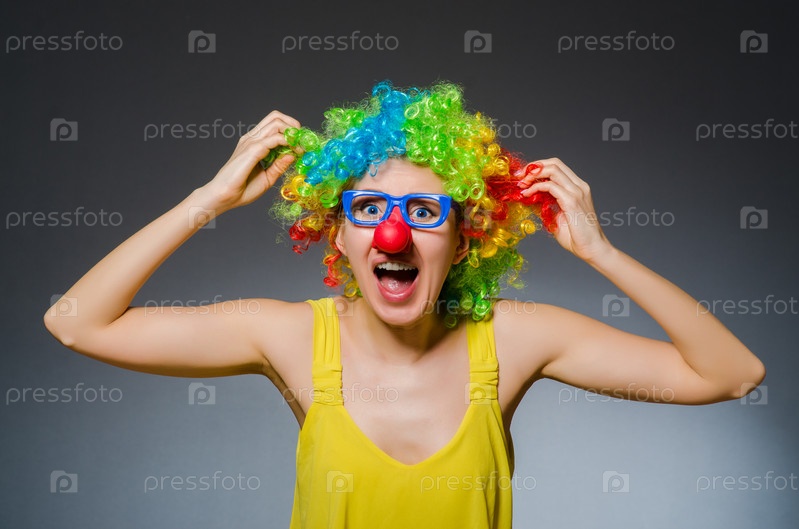 Смешная женщина в клоунском парике