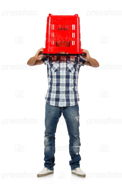 Мужчина с продуктовой тележкой